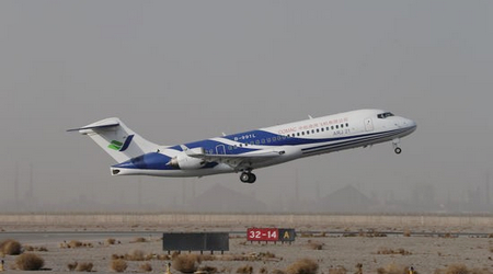 中國經濟網訊 2013年3月31日,ARJ21-700飛機102架機進行了轉場后的首次檢飛。102架機于上午9時21分在嘉峪關機場起飛,經過1小時46分鐘的飛行,于11時07分降落,順利完成了檢飛任務。局方試飛員對飛機性能和狀態(tài)給予了肯定。