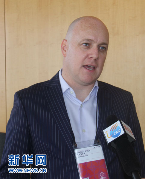 圖為新西蘭航空全球首席執(zhí)行官陸杰鋒 (Air New Zealand CEO Christopher Luxon)23日在奧克蘭接受新華網(wǎng)記者專(zhuān)訪(fǎng)。