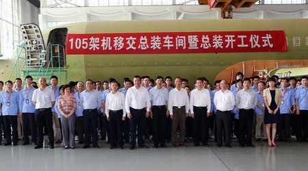 中國(guó)經(jīng)濟(jì)網(wǎng)訊 2013年5月14日,ARJ21新支線飛機(jī)105架機(jī)正式移交總裝車間開(kāi)工總裝,標(biāo)志著預(yù)投產(chǎn)工作取得了階段性重要進(jìn)展。