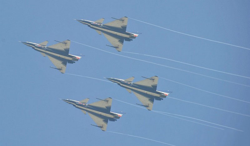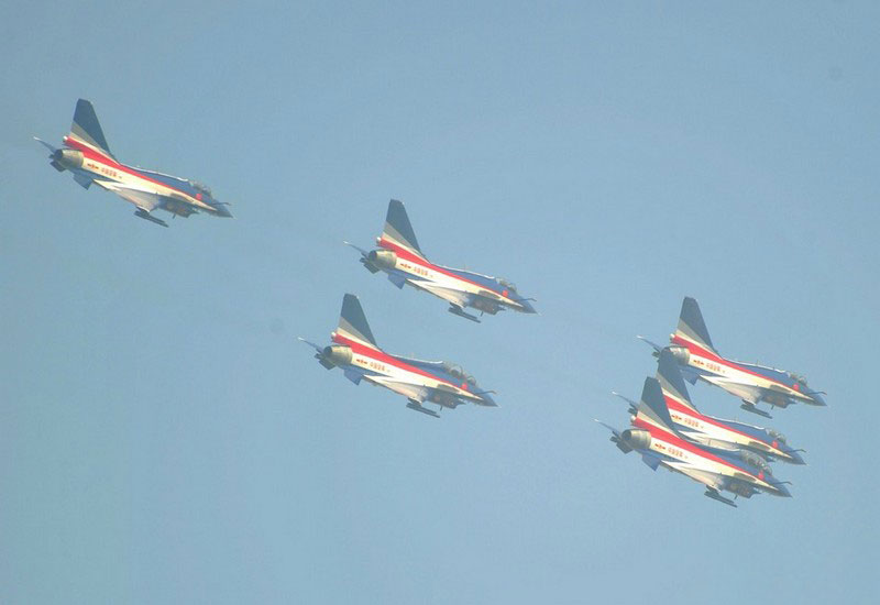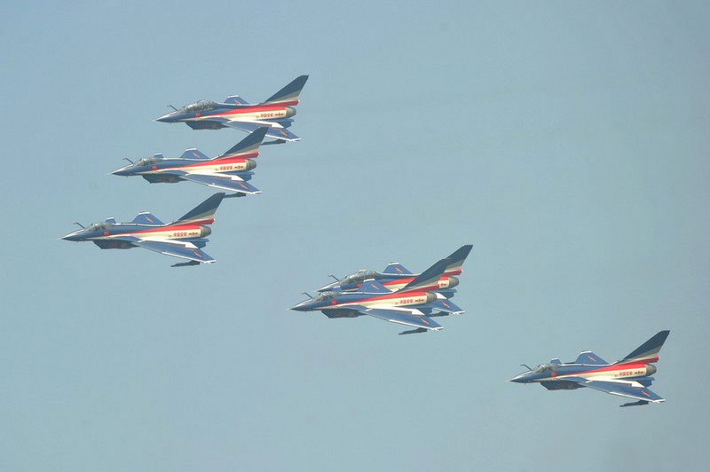 【環(huán)球網(wǎng)赴珠海航展特派報(bào)道組綜合報(bào)道】第九屆中國國際航空航天博覽會(huì)(珠海航展2012)將于11月13日-18日在廣東省珠海市金灣區(qū)三灶鎮(zhèn)隆重舉行。開展當(dāng)日,中國空軍八一飛行表演隊(duì)的6架殲-10戰(zhàn)機(jī)翱翔藍(lán)天,漫步云端。