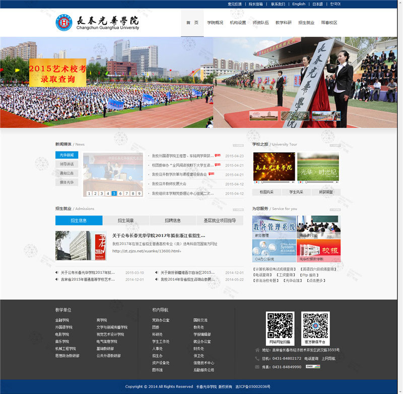 長春光華學院,原長春大學光華學院,成立于2000年,2004年被教育部首批確認為本科層次獨立學院,2013年經(jīng)教育部批準轉(zhuǎn)設(shè)為獨立設(shè)置的民辦普通本科院校。國家計劃內(nèi)招生,全國統(tǒng)一錄取。學校擁有長春和琿春兩個校區(qū)(琿春校區(qū)2014年6月開工建設(shè))。長春校區(qū)即校本部坐落在長春經(jīng)濟技術(shù)開發(fā)區(qū),占地面積76.6萬平方米,建筑面積30.11萬平方米?,F(xiàn)設(shè)有商學院、金融學院、電氣信息學院、機械工程學院、外國語學院、文學與新聞傳播學院、電影學院、視覺藝術(shù)設(shè)計學院、音樂學院、基礎(chǔ)教研部、思想政治教研部和公共外語教研部12個教學院部,有37個本科專注,涵蓋經(jīng)、管、文、藝、工、理六個學科門類?,F(xiàn)有專任教師560人,其中具有高級職稱的任課教師占44.3%,青年教師均為碩士研究生以上學歷,全日制在校生一萬余人...