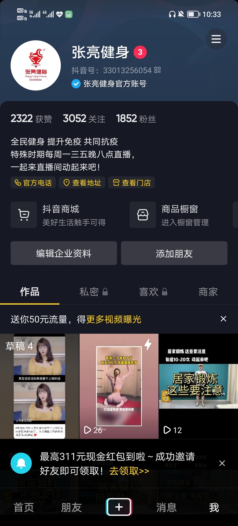 2個月時間,我們幫助張亮健身成功建立抖音官方品牌形象,并收獲高質(zhì)粉絲量的增加和流量轉(zhuǎn)化,如果你也想為企業(yè)建立抖音官方賬號,實現(xiàn)新媒體運營推廣請與我們聯(lián)系!
