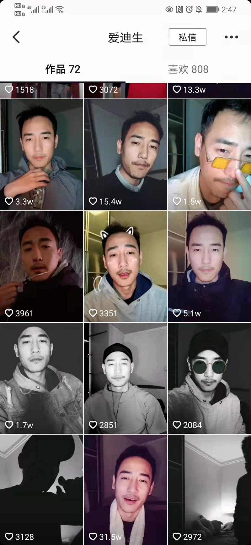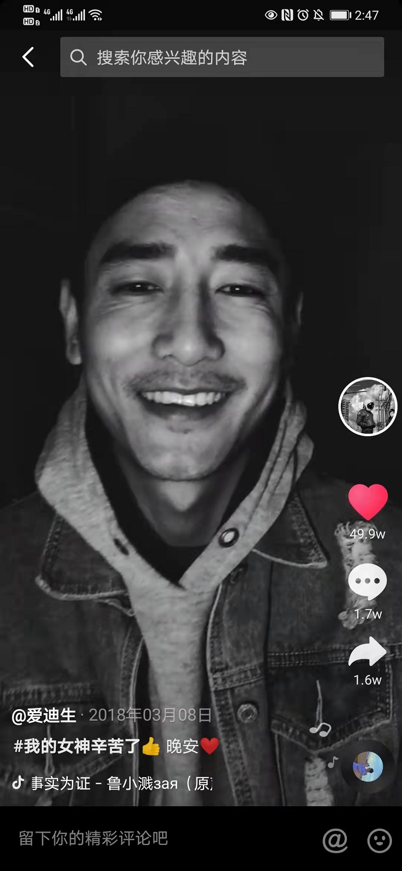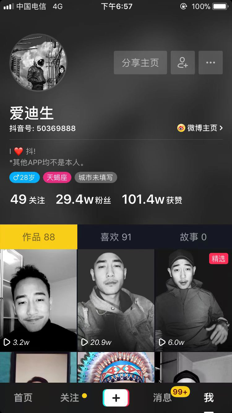 作品沒有特別高產(chǎn),但是個(gè)個(gè)精品,點(diǎn)贊量*高達(dá)49.9萬。哇塞,這是什么神仙流量啊!