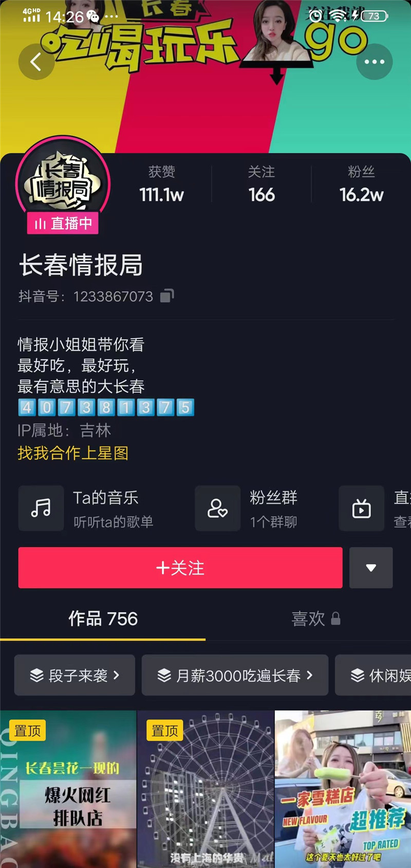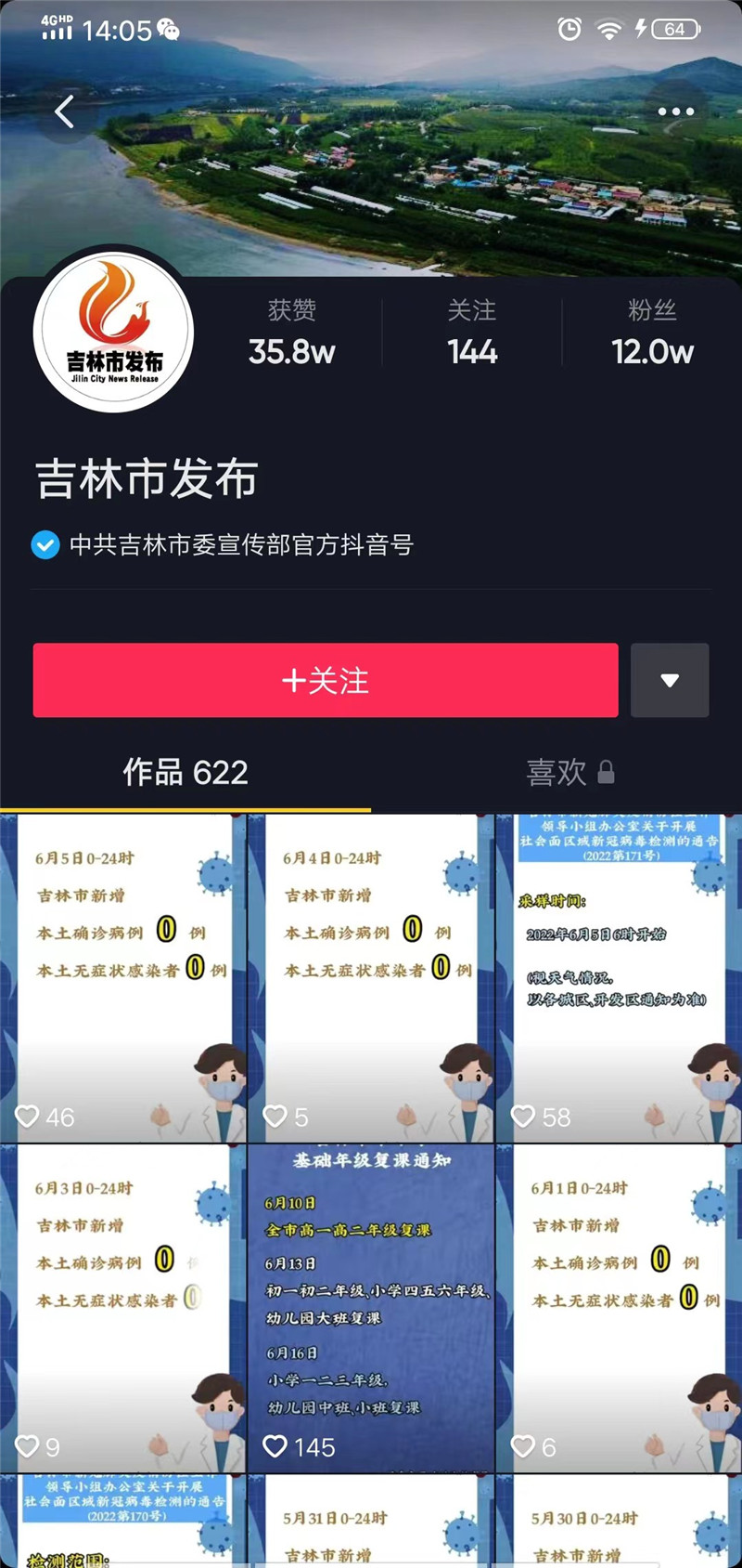 抖音賬號(hào)吉林市發(fā)布+吉林市委宣傳部