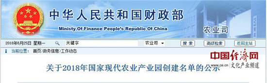 經(jīng)濟(jì)日?qǐng)?bào)-中國經(jīng)濟(jì)網(wǎng)北京6月25日訊 日前,財(cái)政部公示了2018年國家現(xiàn)代農(nóng)業(yè)產(chǎn)業(yè)園創(chuàng)建名單。公示的名單包括21個(gè)國家現(xiàn)代農(nóng)業(yè)產(chǎn)業(yè)園,公示期為6月22日至6月26日。