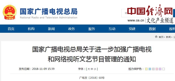 國家廣播電視總局關(guān)于進一步加強廣播電視和網(wǎng)絡(luò)視聽文藝節(jié)目管理的通知