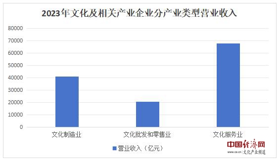 分產(chǎn)業(yè)類型看,文化制造業(yè)實現(xiàn)營業(yè)收入40962億元,比上年增長0.6%;文化批發(fā)和零售業(yè)20814億元,增長6.1%;文化服務(wù)業(yè)67739億元,增長14.1%。