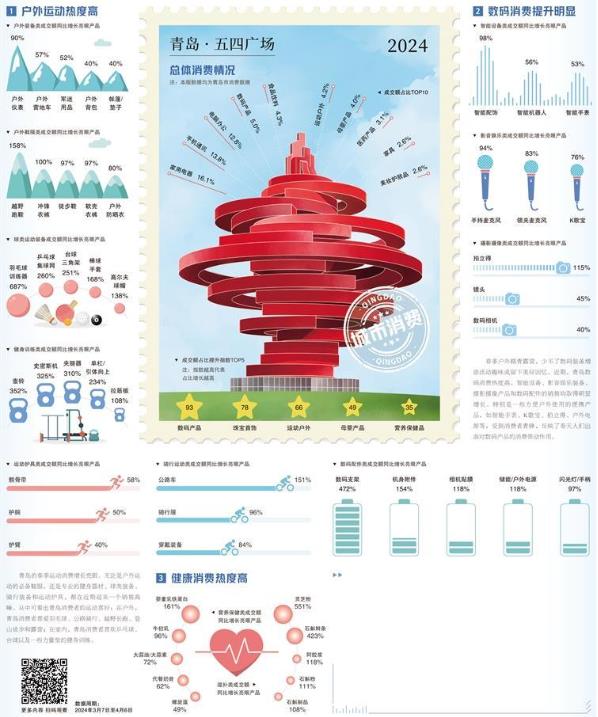 近年來(lái),青島打造了多個(gè)旅游IP,每到節(jié)假日,棧橋、太平角、八大關(guān)、五四廣場(chǎng)等景點(diǎn),都會(huì)人頭攢動(dòng)。影音娛樂(lè)、攝影攝像類(lèi)產(chǎn)品的增長(zhǎng),顯現(xiàn)出青島著名旅游城市的底色。人氣足,消費(fèi)旺,文旅深度融合進(jìn)一步激發(fā)了消費(fèi)活力。