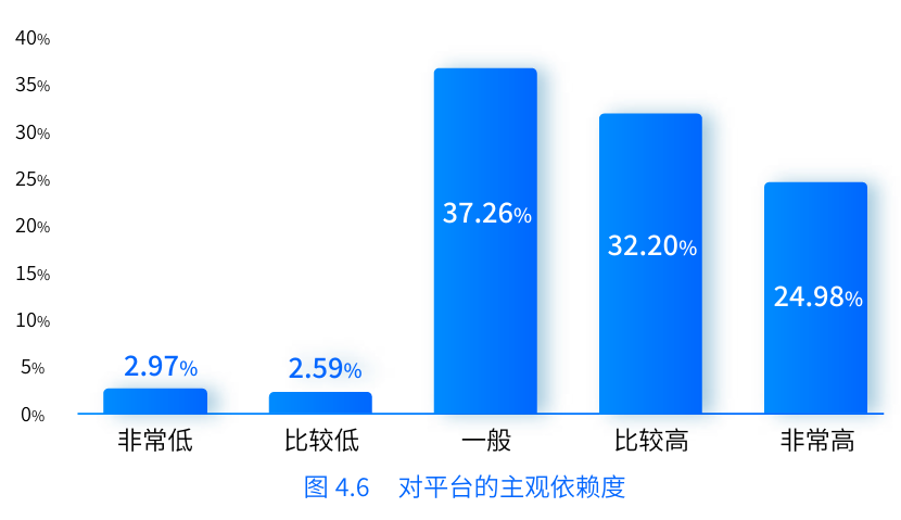 “我們在調(diào)研中發(fā)現(xiàn),貨車司機對使用數(shù)字貨運平臺的主觀依賴度還是很高的?!敝袊嗣翊髮W(xué)中國就業(yè)與民生研究院執(zhí)行副院長周廣肅說。報告中指出,主觀認(rèn)為自己對平臺的依賴程度較高和非常高的司機占全體調(diào)查司機的57.18 %,超過了總數(shù)的一半。