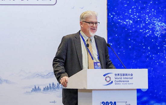 圖為美國(guó)信息產(chǎn)業(yè)機(jī)構(gòu)北京辦事處總裁繆萬(wàn)德在“互聯(lián)網(wǎng)企業(yè)家論壇”上發(fā)言。(大會(huì)供圖)
