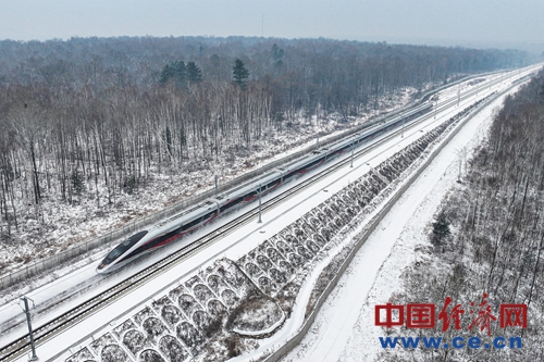 一列復(fù)興號智能動車組列車行駛在沈白高鐵長白山區(qū)段線路上。楊寶森/攝