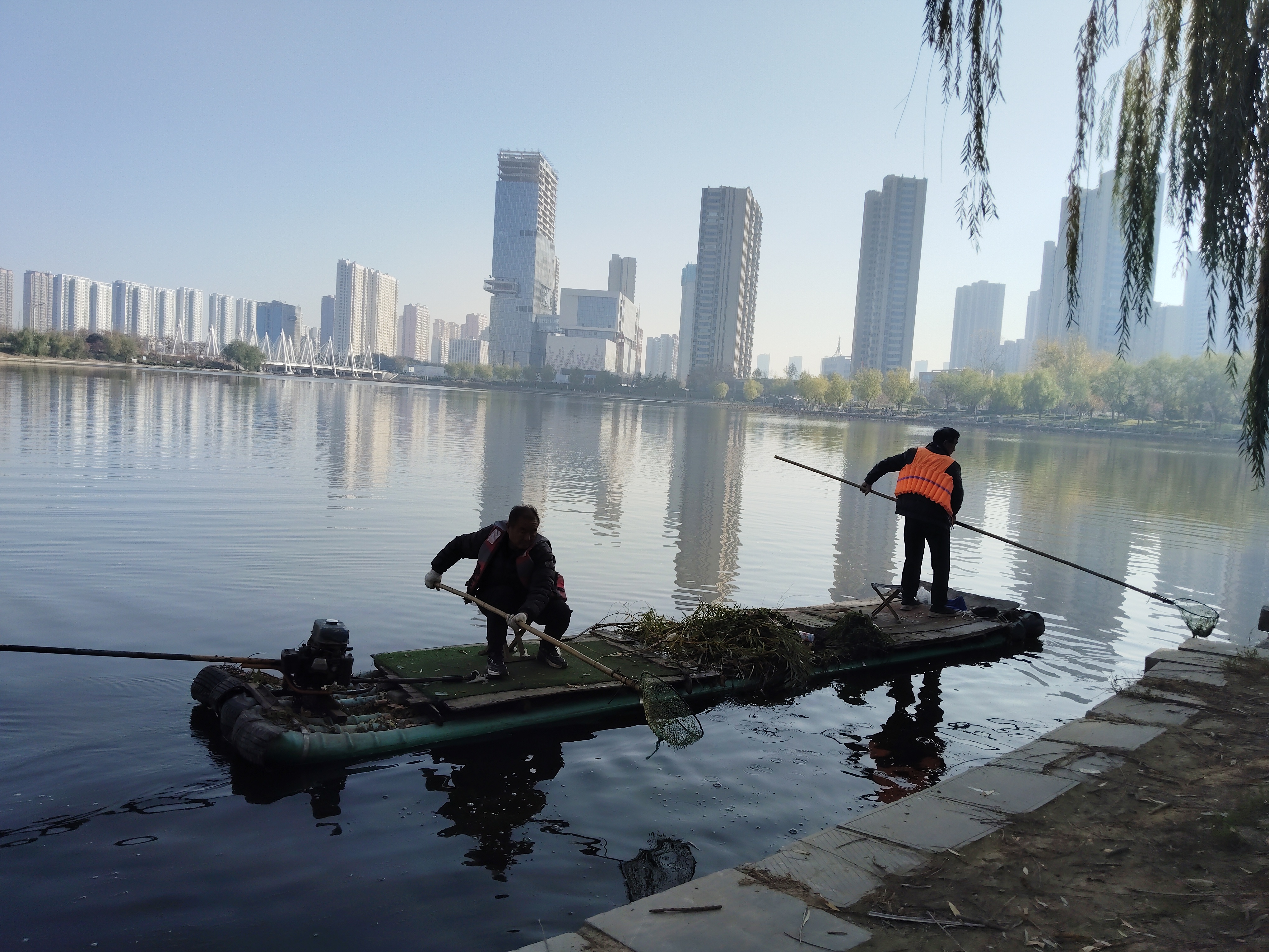 山東菏澤趙王河上工作人員清理河道漂浮垃圾。(圖片來源:水利部)