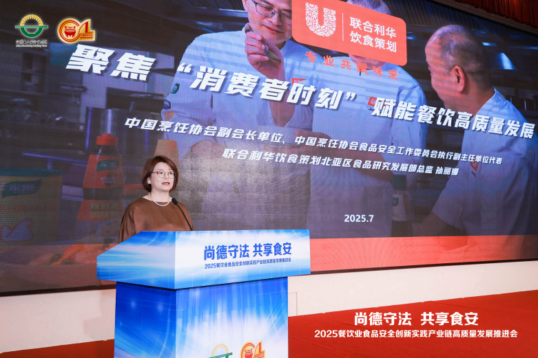 中國經(jīng)濟(jì)網(wǎng)北京7月18日訊(記者 鞠然)今日,在2025餐飲業(yè)食品安全創(chuàng)新實(shí)踐產(chǎn)業(yè)鏈高質(zhì)量發(fā)展推進(jìn)會(huì)上,聯(lián)合利華飲食策劃北亞區(qū)食品研究發(fā)展部總監(jiān)孫麗娜,以“聚焦‘消費(fèi)者時(shí)刻’賦能餐飲高質(zhì)量發(fā)展”為題發(fā)表講話。