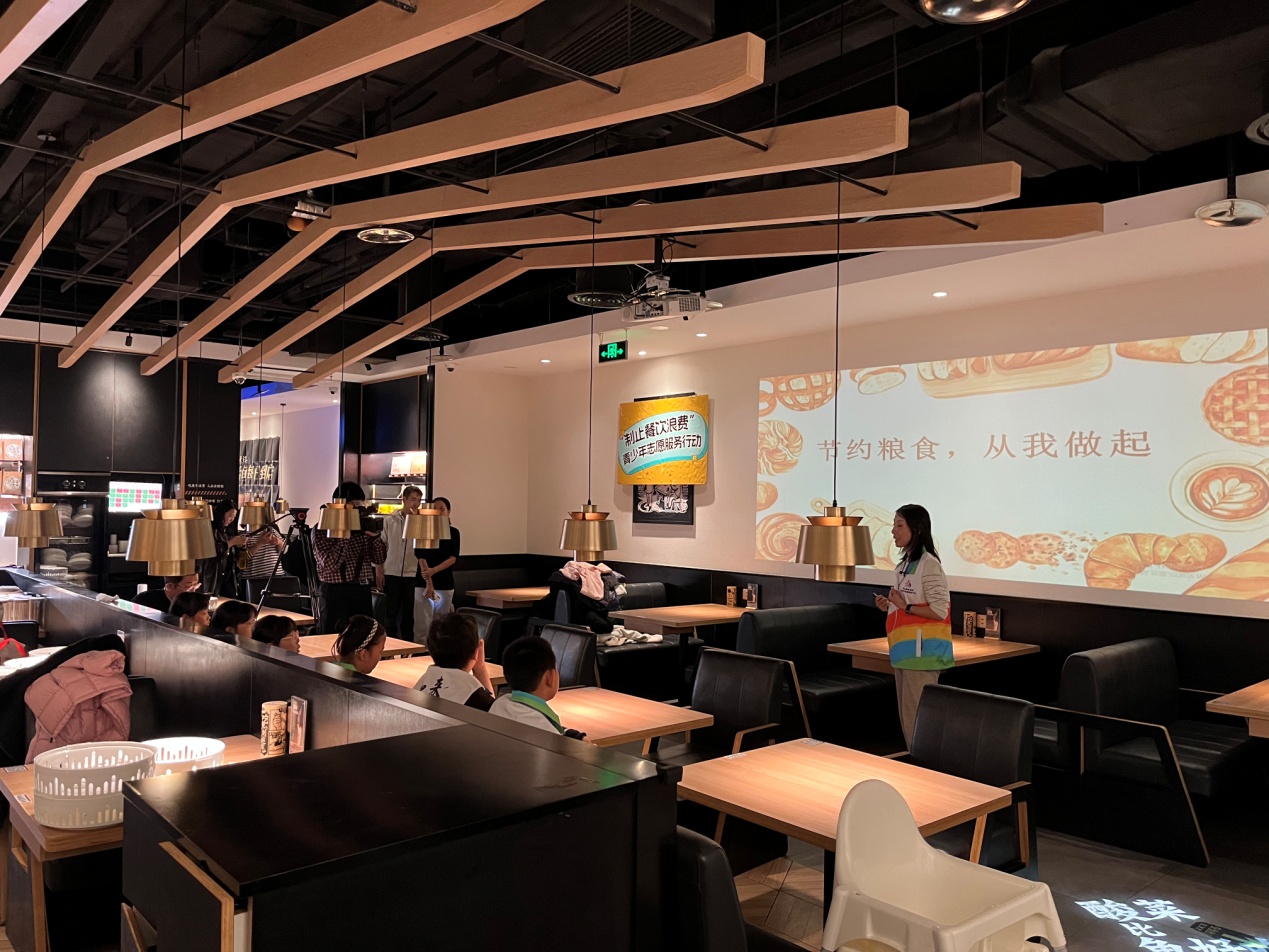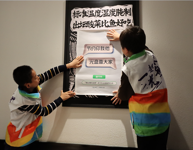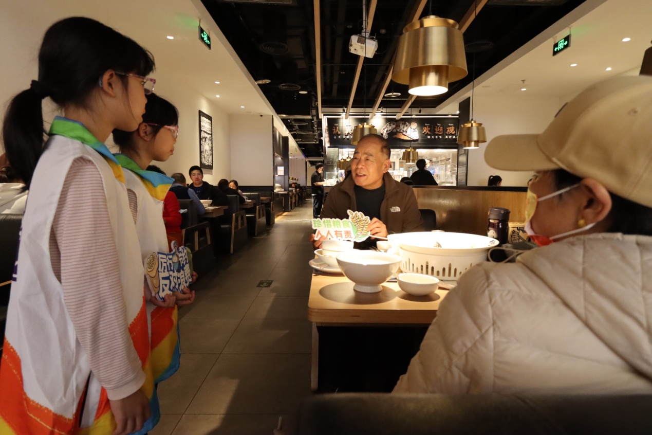 活動(dòng)將科普與實(shí)踐相結(jié)合,青少年志愿者們學(xué)以致用,在實(shí)踐環(huán)節(jié)化身“制止餐飲浪費(fèi)”宣傳員,向餐廳中的消費(fèi)者宣傳節(jié)糧反浪費(fèi)知識(shí)。