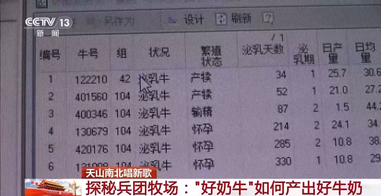 總臺央視記者 陳允濤:在新疆生產(chǎn)建設(shè)兵團第十二師天潤乳業(yè)北亭萬頭牧場,這塊大屏幕就是奶牛場的智能管理系統(tǒng),每一頭奶牛的健康狀況都可以實時監(jiān)控。