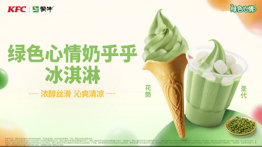 隨變聯(lián)合肯德基打造九珍果汁脆皮冰淇淋,粉巧脆皮搭配九珍果汁軟芯,清甜微酸,一口入夏。作為二十年的經(jīng)典品牌,綠色心情與肯德基攜手聯(lián)名“綠色心情奶乎乎冰淇淋”,已在全國(guó)萬(wàn)余家線下肯德基門店上市,綠豆風(fēng)味冰淇淋奶香濃郁,絲滑沁爽,為夏日帶來一抹特別的綠色清涼。