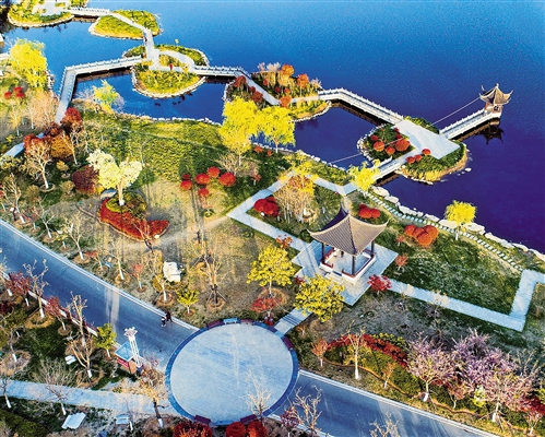 4月7日拍攝的江蘇省連云港市東??h水晶公園。近年來,東海縣堅持走“生態(tài)優(yōu)先、綠色發(fā)展”之路,通過實施生態(tài)修復,河道、村莊綜合整治等多項管理機制,為當地打造了“碧水藍天、岸綠花香”的良好生態(tài)。