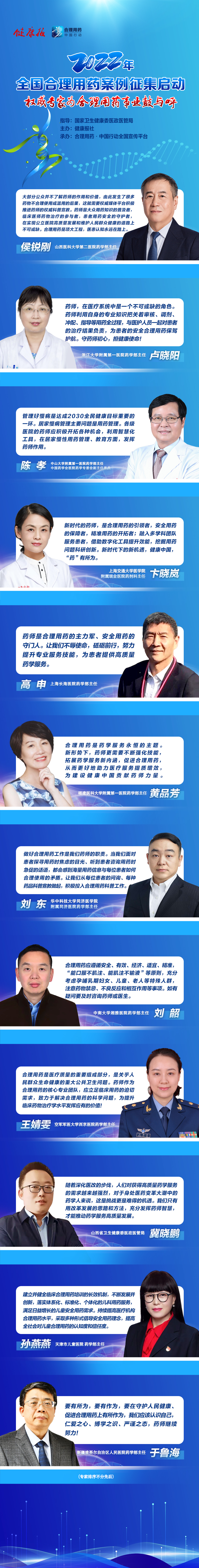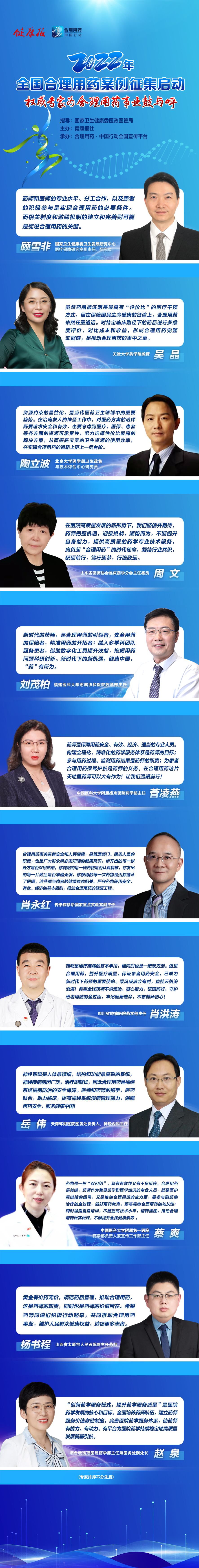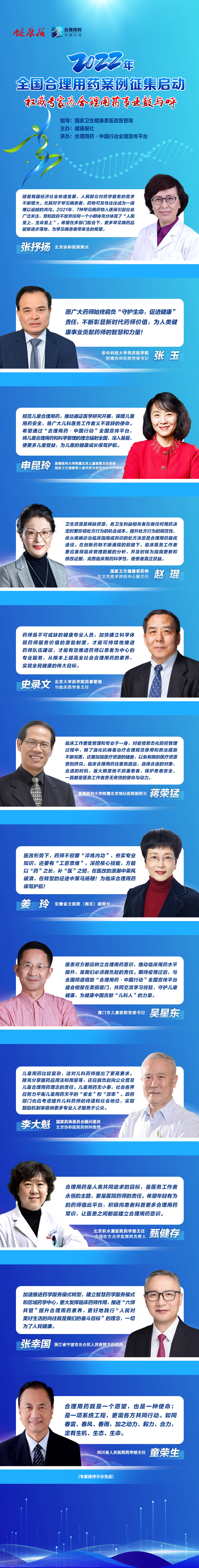 全國(guó)權(quán)威醫(yī)藥專家寄語(yǔ)合理用藥事業(yè),齊聚征集啟動(dòng)時(shí)刻,歡迎各地衛(wèi)生健康行政主管部門和醫(yī)療機(jī)構(gòu)積極報(bào)送案例。