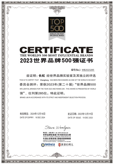 12月19日,世界品牌實驗室(World Brand Lab)2023年度《世界品牌500強》排行榜揭曉,48個中國品牌入榜,中國企業(yè)長虹排名世界品牌榜第285位,較2022年上升1位。同時,中國國航、長虹、海爾智家等35個領(lǐng)軍品牌入選“2023年中國品牌年度大獎”。