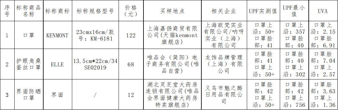 KENMONT、ELLE等3款樣品實(shí)測(cè)UPF值與明示或宣稱不符