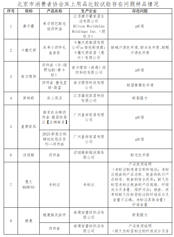 針對本次比較試驗情況,北京市消費者協(xié)會提醒消費者,購買床上用品時,應(yīng)首選大、中商場或大眾認可的正規(guī)線上平臺,從品牌專賣店或平臺自營店購買,謹慎購買價格過低的商品,盡量不要選擇標(biāo)識信息模糊、內(nèi)容不全、明顯不正確,甚至沒標(biāo)識的產(chǎn)品,其產(chǎn)品質(zhì)量和售后服務(wù)難以保證。
