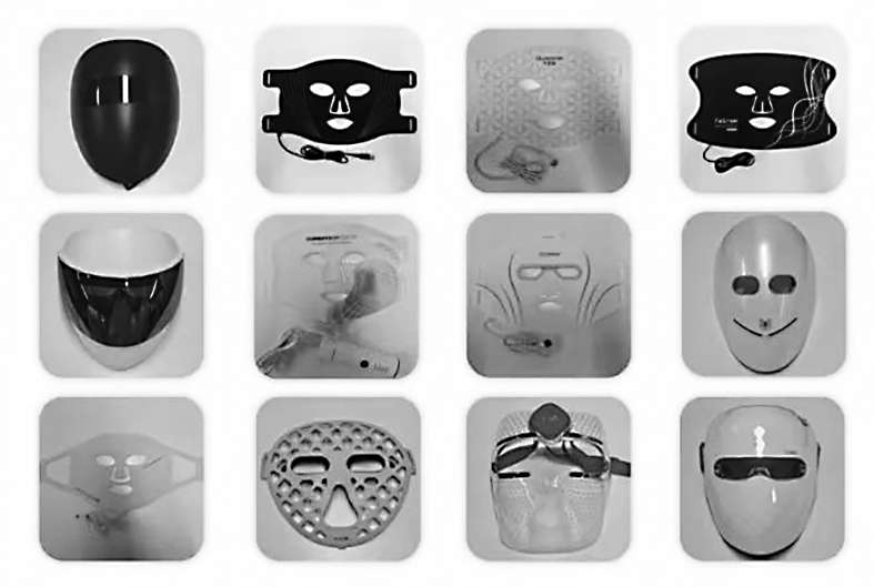 根據(jù)產(chǎn)品宣傳和相關(guān)文獻(xiàn)研究結(jié)果,LED光通常用不同顏色來代表波長區(qū)間,對皮膚具有不同的作用,例如一般認(rèn)為紅光可促進(jìn)受損皮膚修復(fù),促進(jìn)新陳代謝;黃光具有減輕局部皮膚敏感,改善紅斑和毛細(xì)血管擴(kuò)張的作用;藍(lán)光作用在表皮層,用作殺菌消炎祛痘;綠光能抑制黑色素生成等。試驗結(jié)果顯示,12款樣品的波長差異較大,光照類型在2至7種不等,其中以紅光、藍(lán)光、黃光、紅外光為主。