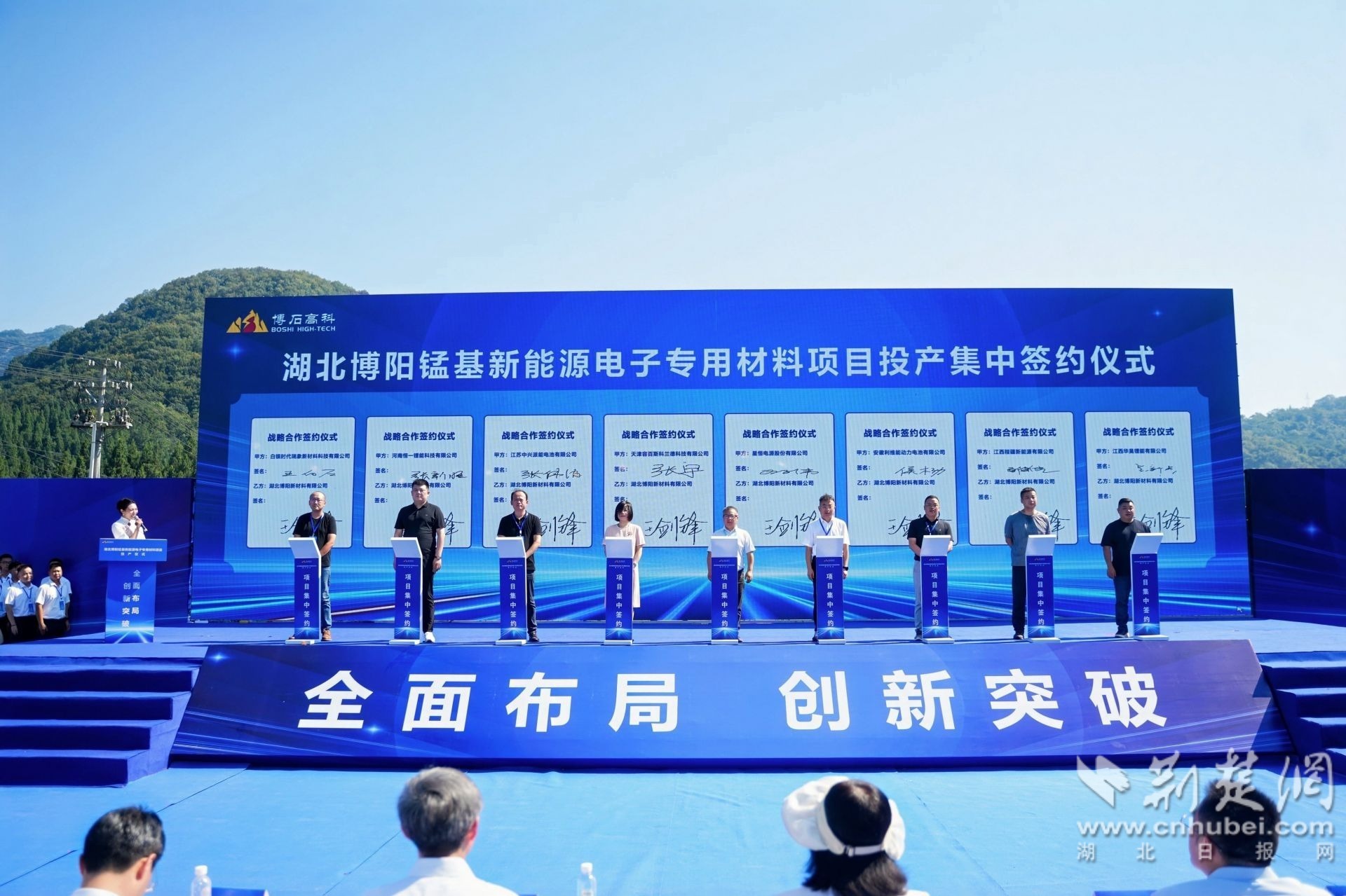 湖北博陽錳基新能源電子專用材料項目投產(chǎn)集中簽約儀式。(黃婉蓉 攝)