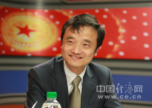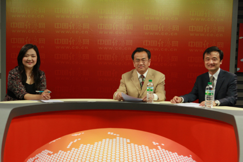 經(jīng)濟(jì)日報社產(chǎn)經(jīng)新聞部主任崔書文(中)和國家統(tǒng)計局中國經(jīng)濟(jì)景氣監(jiān)測中心副主任、高級統(tǒng)計師潘建成(右)今日做客中國經(jīng)濟(jì)網(wǎng) 王耀峰/攝