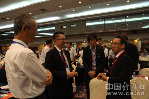 由中國道路交通安全協(xié)會、中國汽車技術(shù)研究中心和中國經(jīng)濟(jì)網(wǎng)共同主辦的“2013中國道路交通安全論壇”于8月29日在北京首都大酒店舉行。圖為日產(chǎn)汽車株式會社企劃·先行技術(shù)開發(fā)本部部長高橋信彥(右)與參會嘉賓進(jìn)行交流。中國經(jīng)濟(jì)網(wǎng) 裴小閣 攝影