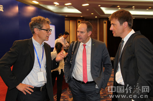 由中國道路交通安全協(xié)會、中國汽車技術研究中心和中國經濟網共同主辦的“2013中國道路交通安全論壇”于8月30日在北京首都大酒店舉行。圖為歐洲新車安全評鑒協(xié)會主席安德魯斯克與參會嘉賓進行交流。中國經濟網 郝紅波/攝