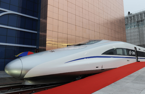 全球最快列車(chē)——中國(guó)國(guó)產(chǎn)時(shí)速380公里高速鐵路機(jī)車(chē)日前正式下線,明年將亮相京滬高鐵。它的設(shè)計(jì)制造者——中國(guó)南車(chē)集團(tuán)一舉成為引領(lǐng)全球高鐵技術(shù)的新貴。