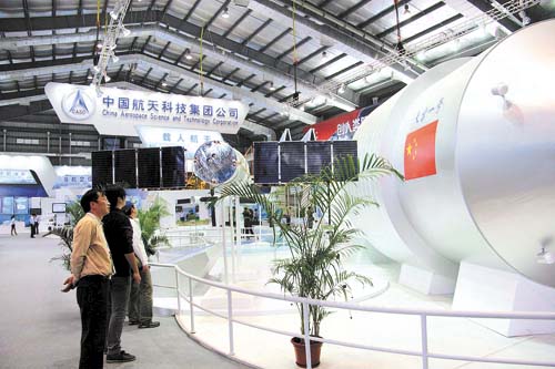 “天宮一號(hào)”等展品剛一亮相就吸引了專業(yè)觀眾駐足觀看