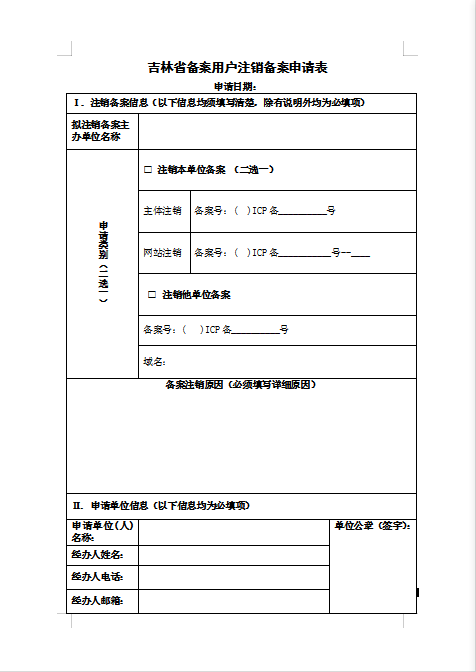 (2)如申請(qǐng)注銷多域名網(wǎng)站部分域名注銷的,申請(qǐng)人為備案主體的請(qǐng)通過備案變更實(shí)現(xiàn),申請(qǐng)人非備案主體的,可填寫此表。