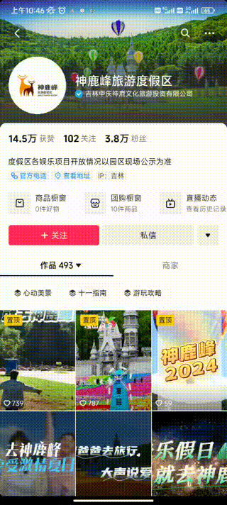 企業(yè)抖音藍(lán)v賬號(hào)展示——神鹿峰旅游文化區(qū)