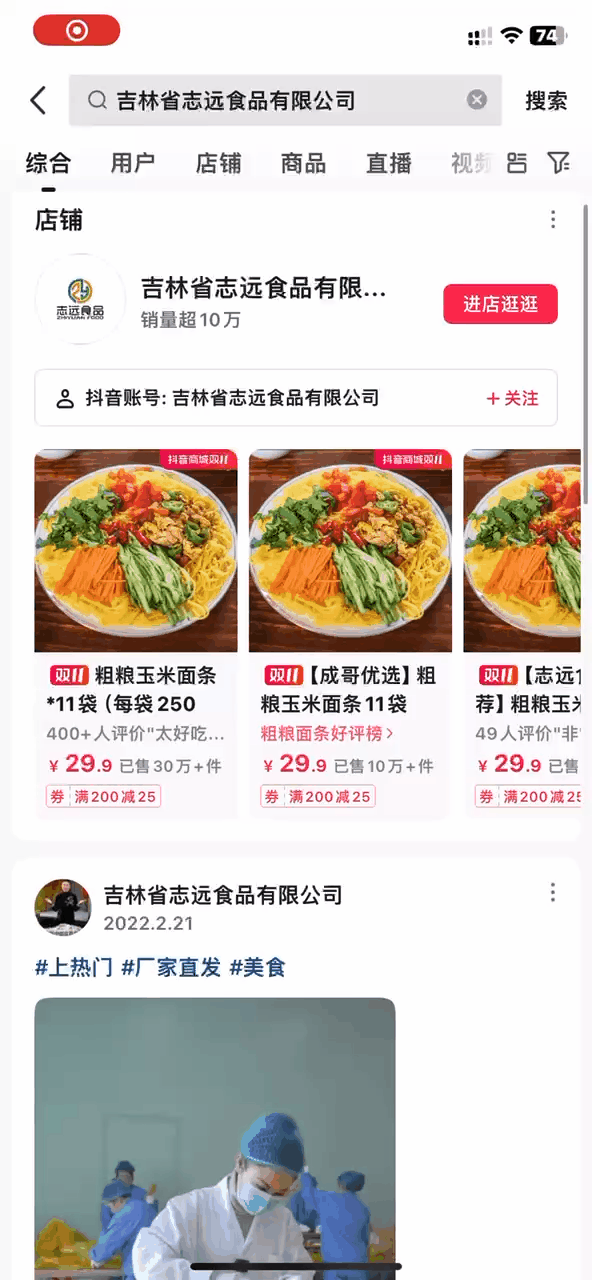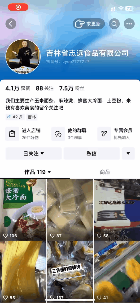 企業(yè)抖音藍(lán)V賬號(hào)展示——吉林省志遠(yuǎn)食品有限責(zé)任公司