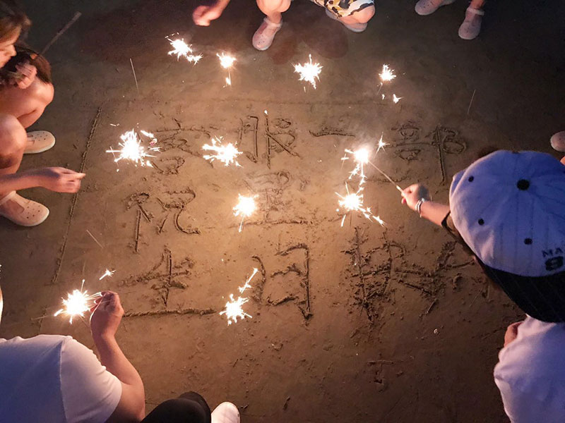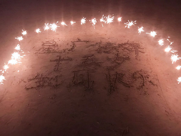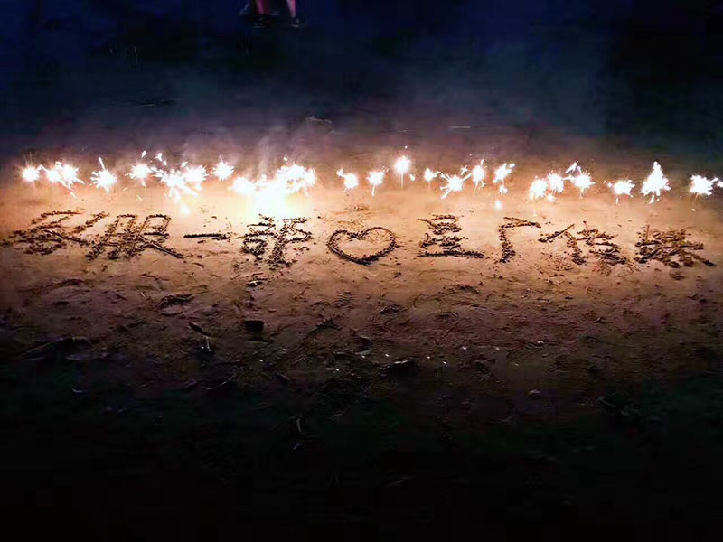 帶著我們部門(mén)的深深的祝福,你畫(huà)字,我插煙花棒,她打光,再一起點(diǎn)燃煙花,拍下綻放這一刻!