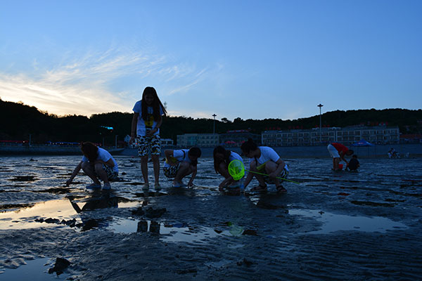 退潮的時(shí)候,在沙灘上挖螃蟹,捉魚(yú)蝦~
