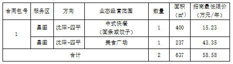 2.2招商范圍及合同包:本次招商業(yè)態(tài)為昌圖服務(wù)區(qū)中式快餐和美食廣場2個點位,劃分為一個合同包。