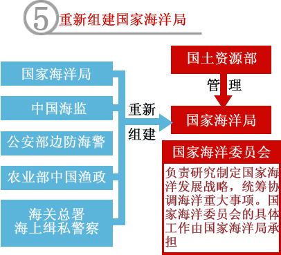 - 解析:方案提出,將現(xiàn)國家海洋局及其中國海監(jiān)、公安部邊防海警、農(nóng)業(yè)部中國漁政、海關(guān)總署海上緝私警察的隊伍...